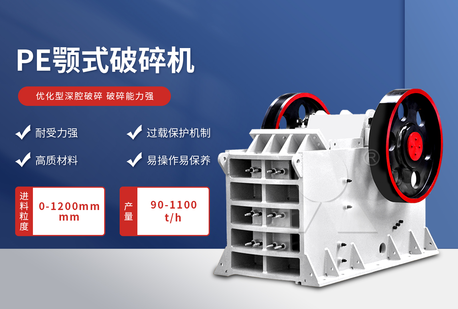 【建議顎破:進(jìn)料口大,1.2米以下物料可直接入料、對物料硬度沒有要求,產(chǎn)量高】