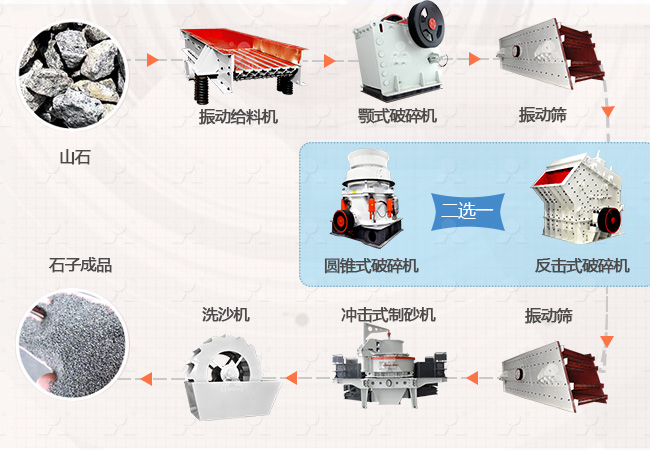 優(yōu)點(diǎn):適用于處理中等硬度、脆軟性石料,成品粒形好、粉料少,且前期投資成本相對(duì)較少。