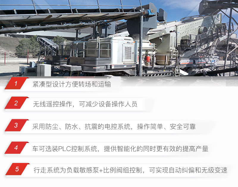 破碎機(jī)可搭載移動機(jī)架組成移動破碎機(jī),具有以下多重優(yōu)勢: