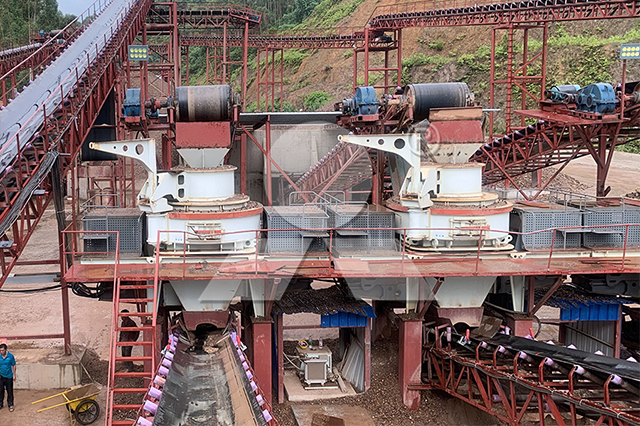 設(shè)備配置:3臺HPT300圓錐破碎機(jī)、3臺VSI6X1263制砂機(jī)、