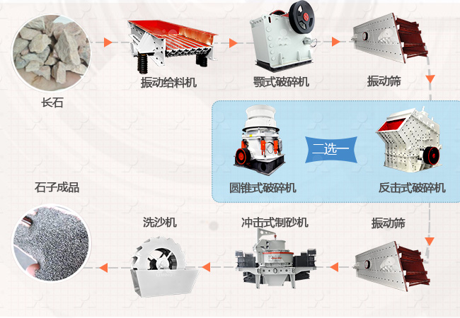 長石破碎工藝流程通常包括以下步驟:預(yù)碎、中碎和細(xì)碎。